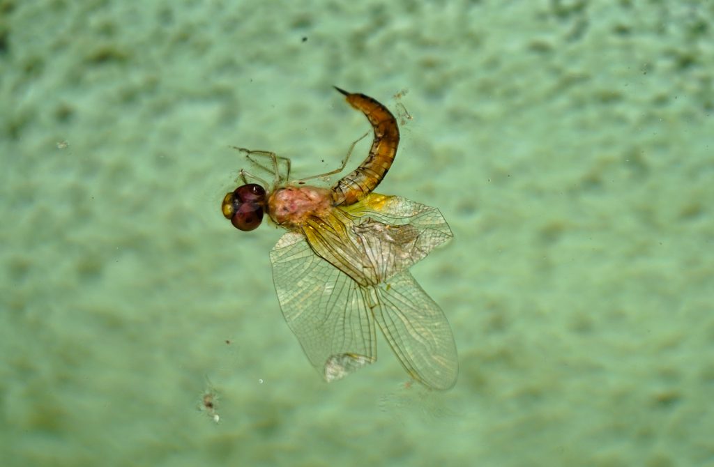 Dragonflies also breed in the Maldives. I have observed dragonfly larvae or nymphs on my island. Recently, I have seen lots of newborn dragonflies and nymphs in the Maldives capital city, Male’.